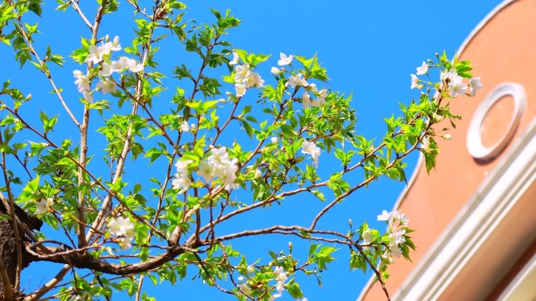 月光洒下樱花仿若被银霜轻覆